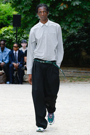 また、本テーマを構想する中で、リチャード・セラとジェームズ・タレルの2 人のアーティストを思い浮かべました。彼らは表現手法は正反対でも、自然との共存を前提とする点で共通しており、自身の服作りにも通じる哲学がある。その考えを取り入れ、「自然との調和」を重視したプロダクトを設計。リチャード・セラの「重厚さ」とジェームズ・タレルの「軽快さ」を素材や色で融合し、無骨さと軽やかさの対比を表現している。